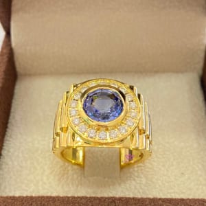 Nhẫn Nam Đính Kim Cương Moissanite và Saphier Sang Trọng