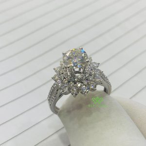 Mẫu nhẫn nữ halo tuyệt đẹp đính full kim cương thiên nhiên, có thể lắp kim moissanite hoặc đá Cz